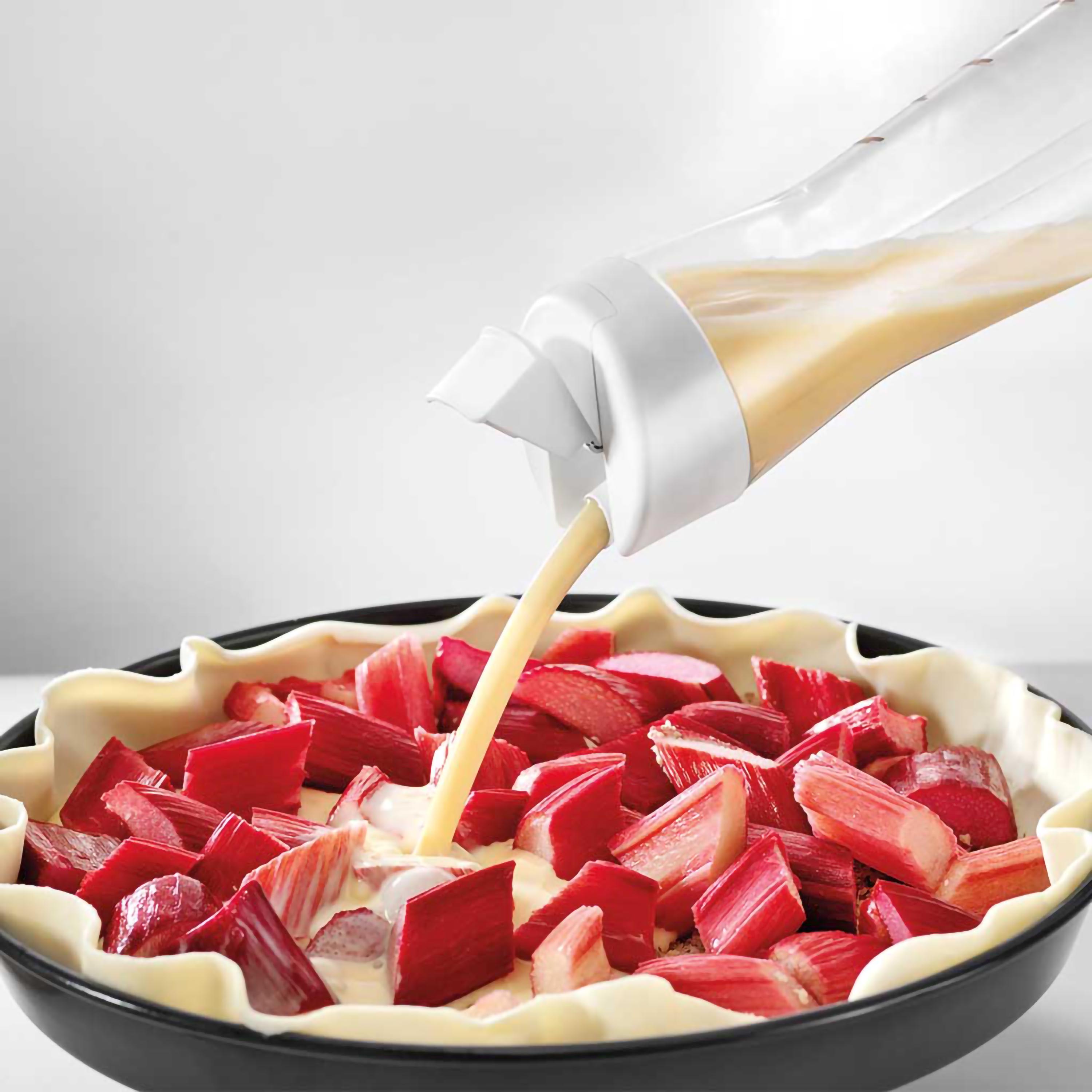 • 3 in 1: garanzia di condimenti per insalata ben densi, “Wähenguss” preparato rapidamente e pasta per omelette senza grumi • Versatore antigocciolamento • Per preparare, servire e conservare • Con una pratica scala a tacche da 1 dl • Capienza tarata sulle ricette di Betty Bossi • Adatto ad essere portato in tavola • Materiale: plastica e filo d'acciaio • Adatto alla lavastoviglie
