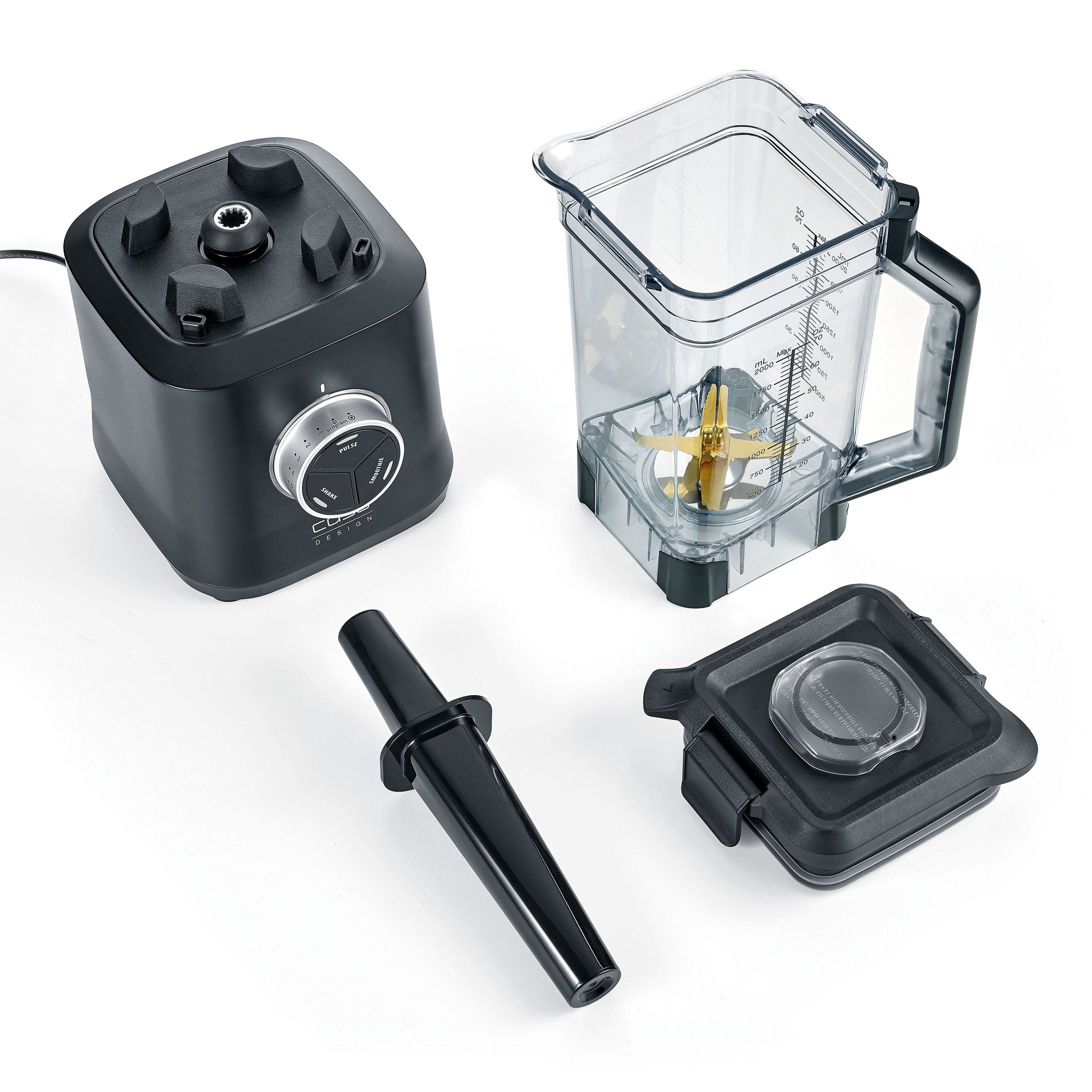 CASO B 2000 è un frullatore ad alte prestazioni progettato per la preparazione smoothie, zuppe, milkshake, long drink, baby food, noci macinate e ghiaccio tritato con risultati omogenei e professionali. Dotato di un motore da 2000 W e di velocità fino a 30 000 rpm, affronta con facilità ingredienti duri e fibre. Il contenitore in Tritan™ da 2 L, resistente al calore e privo di BPA, insieme alle 8 lame con rivestimento in titanio oro, garantisce miscelazioni fini e durature. • Motore potente da 2000 W con velocità fino a 30 000 rpm per risultati professionali su frutta, verdura e ghiaccio • 3 programmi di miscelazione: Pulse, Shake e Smoothie • Contenitore Tritan™ da 2 L grande e infrangibile, BPA‑free e resistente fino a 100 °C • Sistema 8 lame con rivestimento in titanio dorato per taglio efficiente e duraturo • Design elegante matt black con base antiscivolo e blocco di sicurezza che consente l’uso solo con coperchio chiuso • Pestello e misurino inclusi • Potenza: 2000 W • Capacità: 2 L • Dimensioni: 19 x 46 x 21 cm • Peso: 4 kg