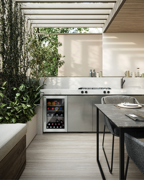 Frigorifero BBQ dal design compatto con finitura in acciaio inox silver, ideale per u...