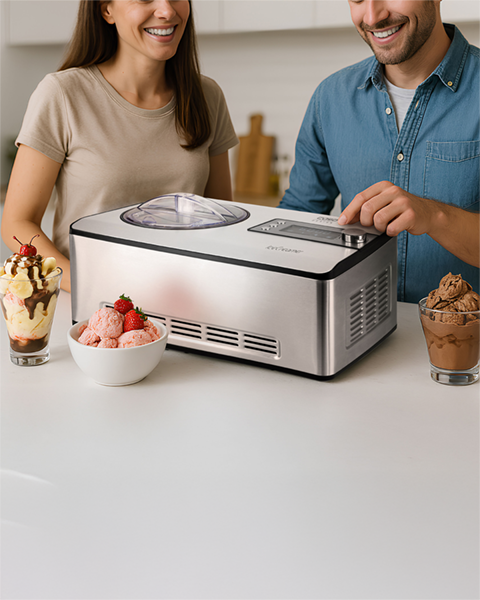Macchina per il gelato fatto in casa dal funzionamento intuitivo e chiaro. Gli ingred...