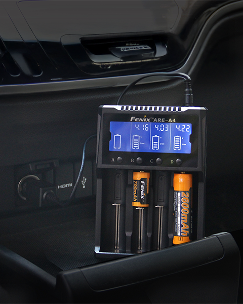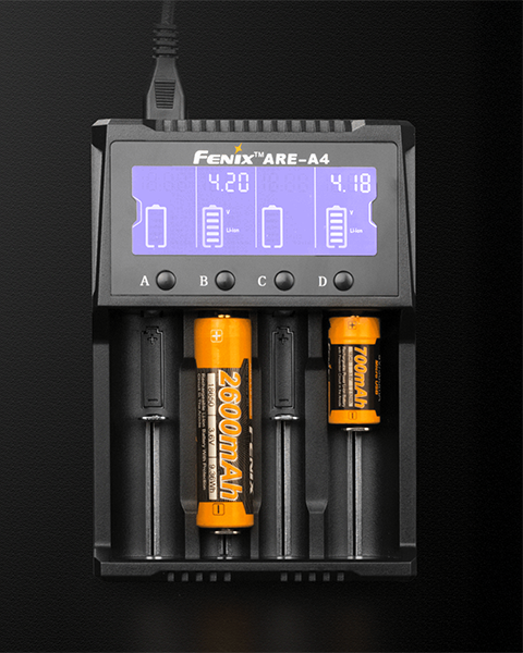 Caricabatterie intelligente con 4 alloggi compatibile per batterie Li-ion e Ni-MH / N...
