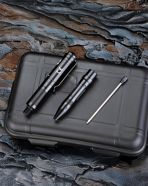 Penna tattica multifunzionale ricaricabile progettata per l’autodifesa, in grado di i...