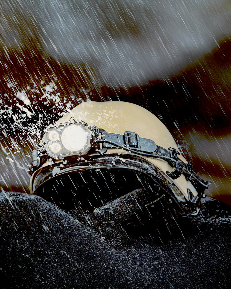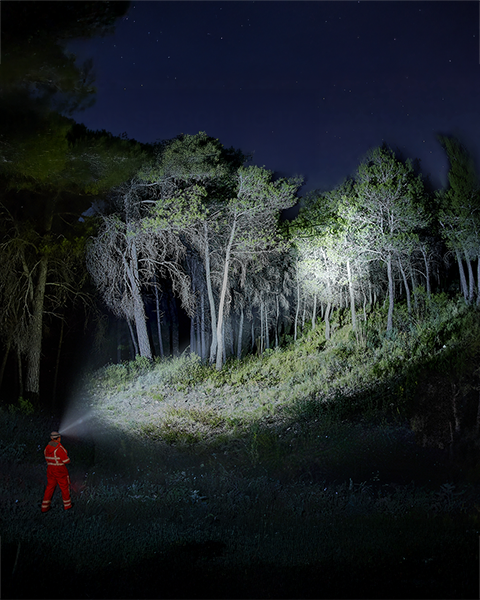 Torcia frontale ricaricabile ad alte prestazioni. L’energia proviene dalle due batter...