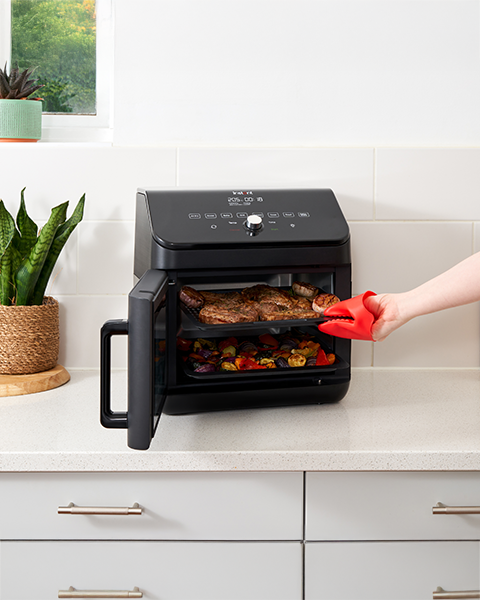Dotata di 9 programmi preimpostati, la Vortex ClearCook si adatta a ogni esigenza: dal pollo arrosto croccante all'espresso toast perfetto. Il pannello di controllo digitale a sfioramento e la ClearCook Window rendono la cottura intuitiva e facile da monitorare. Grazie ai vassoi a due livelli e al girarrosto, cucinare pasti diversi contemporaneamente diventa un gioco da ragazzi.