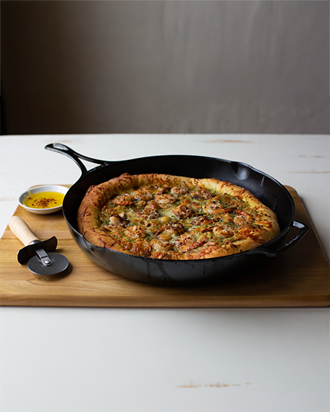 Padella in ghisa leggera e maneggevole con nuova finitura triple seasoned™ e rivestim...