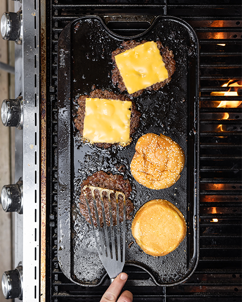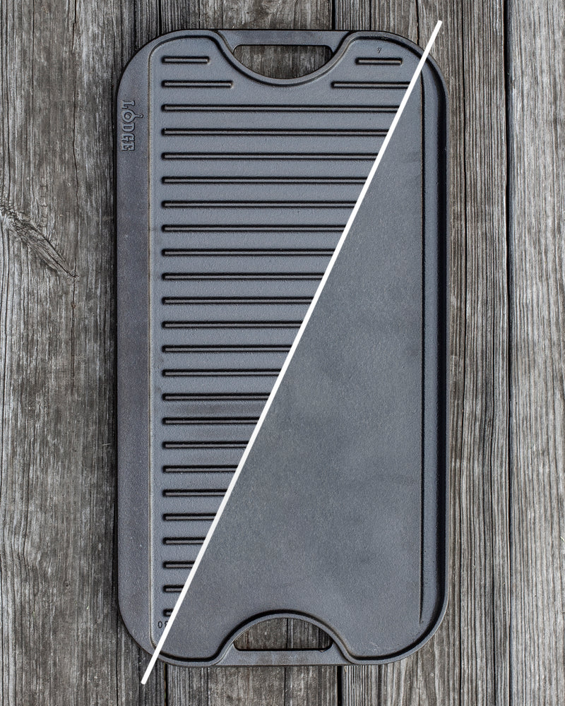 Piastra/griglia reversibile in ghisa.Il lato liscio è ideale per cuocere panini, panc...