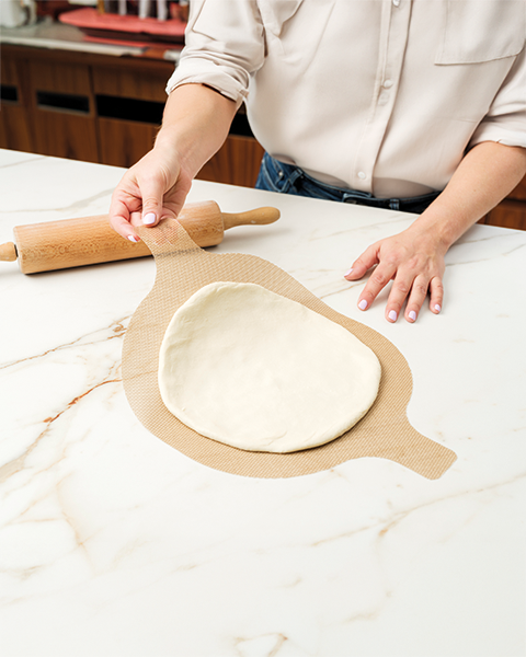 Tappetino per pizza in silicone con rivestimento antiaderente. Permette di sollevare ...