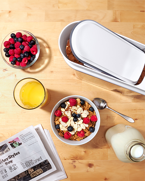 Il coperchio ermetico in silicone mantiene freschi cereali, muesli e snackI nostri di...