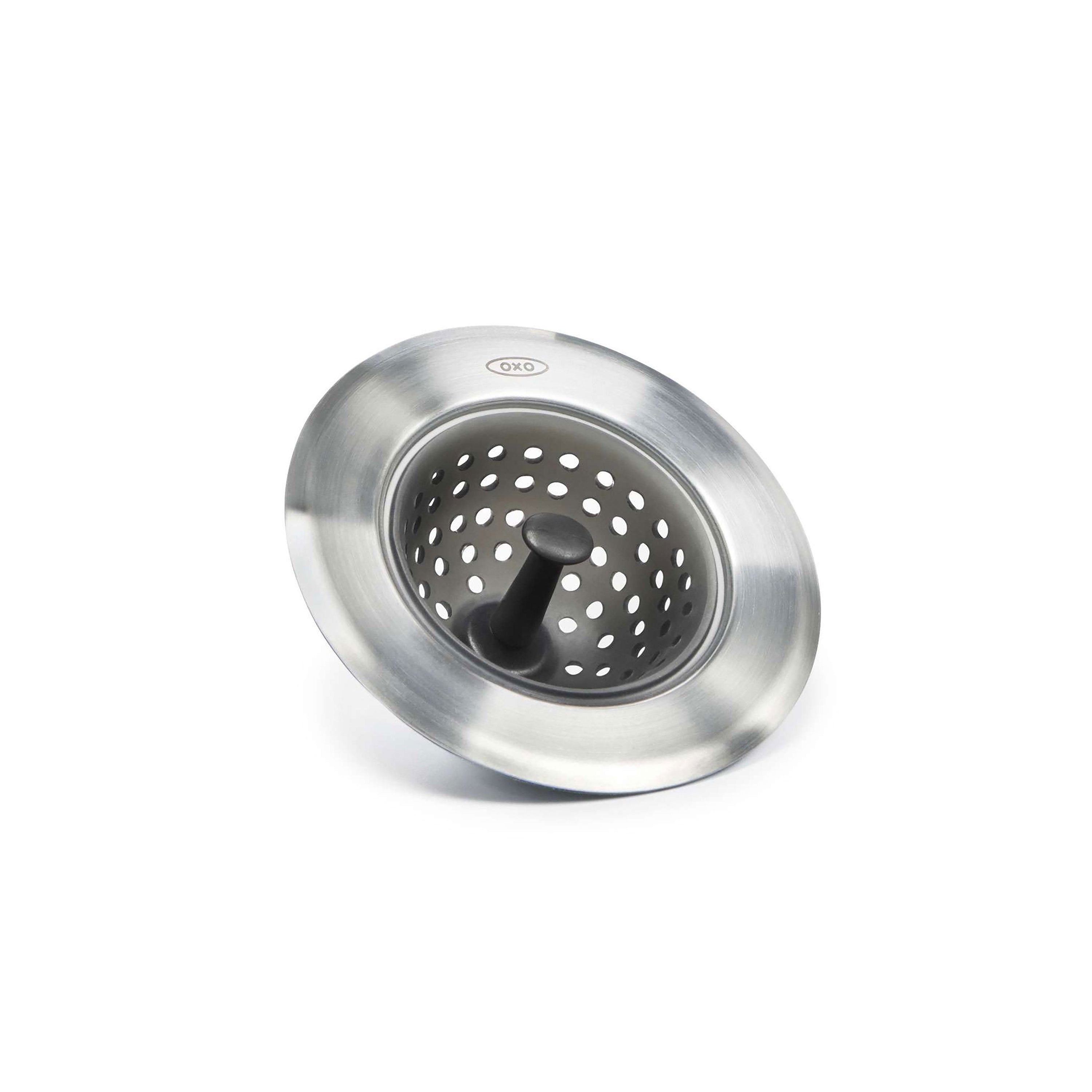 Filtro per lavello in silicone flessibile che facilita la rimozione dei detriti intrappolati. Il filtro per lavello in silicone OXO Good Grips combina l'elegante acciaio inossidabile con il silicone flessibile per proteggere le tubature e intrappolare efficacemente i residui di cibo nel lavello. Quando è il momento di svuotare o pulire il filtro, capovolgilo sopra il cestino dei rifiuti o il bidone del compost. Il filtro è lavabile in lavastoviglie e la parte inferiore in silicone non graffia il lavello.