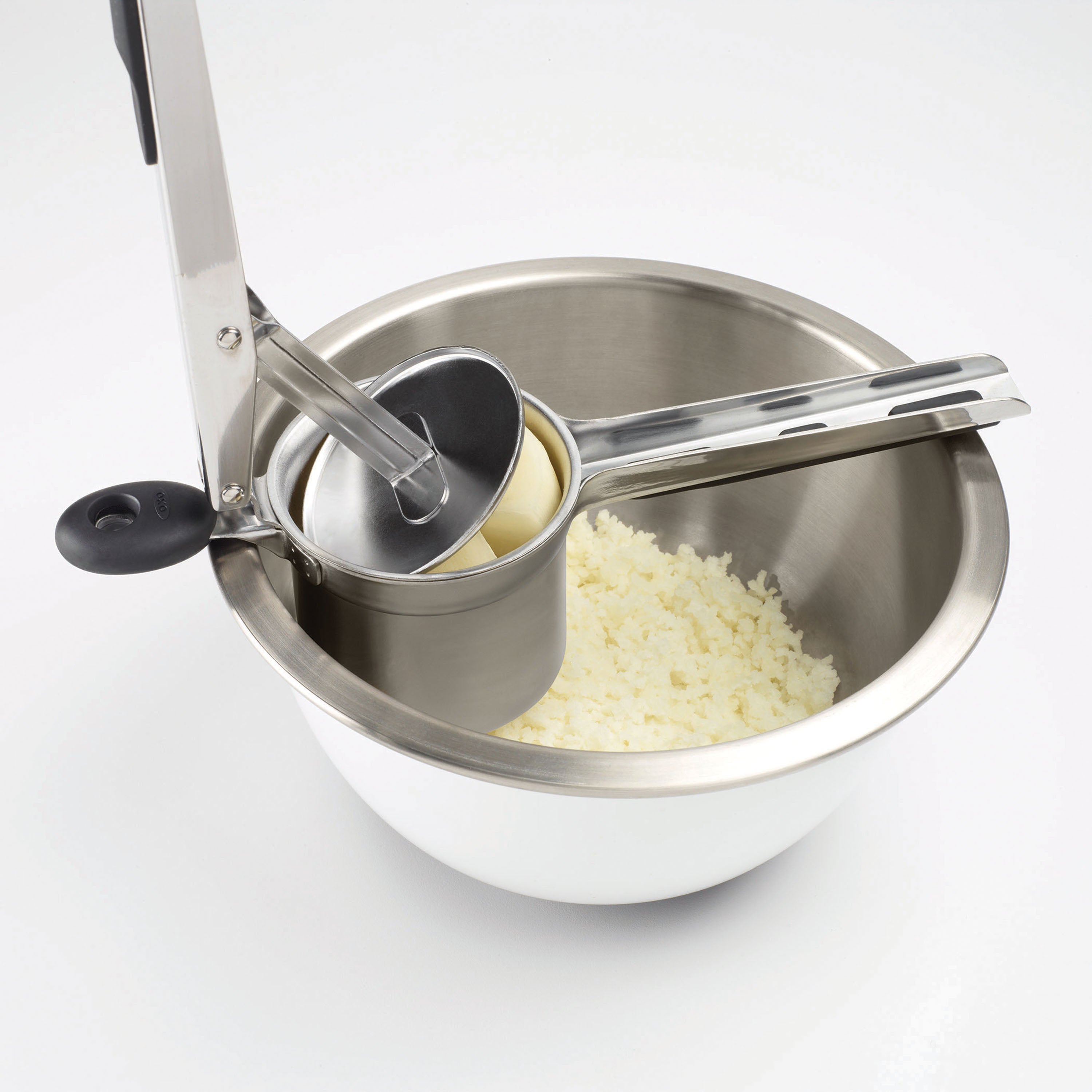 Strumento manuale per schiacciare le patate. Molto semplice da utilizzare. Basta appoggiare lo schiacciapatate su una pentola o una ciotola e stringere i morbidi manici per ottenere un purè perfetto. Il robusto acciaio inossidabile rende lo schiacciapatate solido e la manopola antiscivolo lo mantiene in posizione su qualsiasi pentola o ciotola. • Manico in gomma antiscivolo • Materiale: acciaio inox • Lavabile in lavastoviglie
