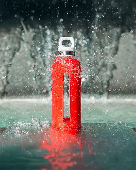 La moderna borraccia SIGG in vetro con rivestimento in silicone blu è ideale per dive...