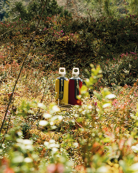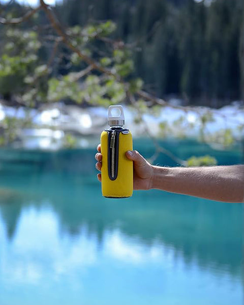 La borraccia SIGG in vetro con rivestimento isolante e removibile in neoprene giallo ...