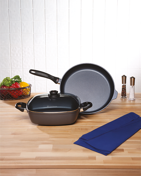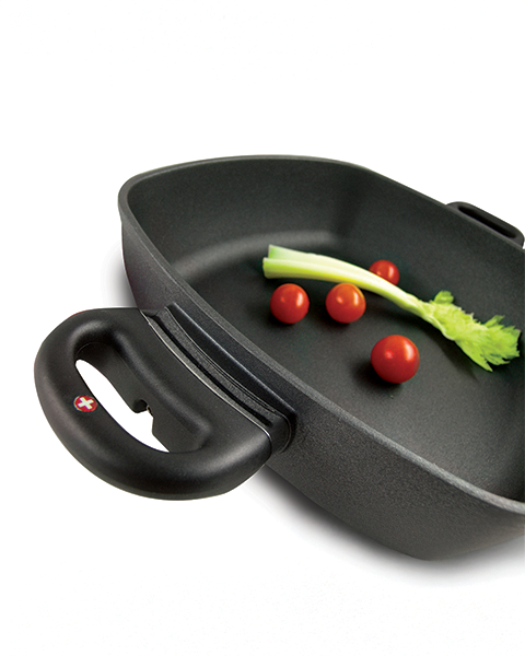 Tegame quadrato antiaderente in alluminio pressofuso con coperchio e due maniglie erg...