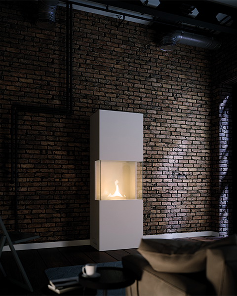 Caminetto autoportante per interno ricaricabile con apposito liquido TenderFuel. Desi...