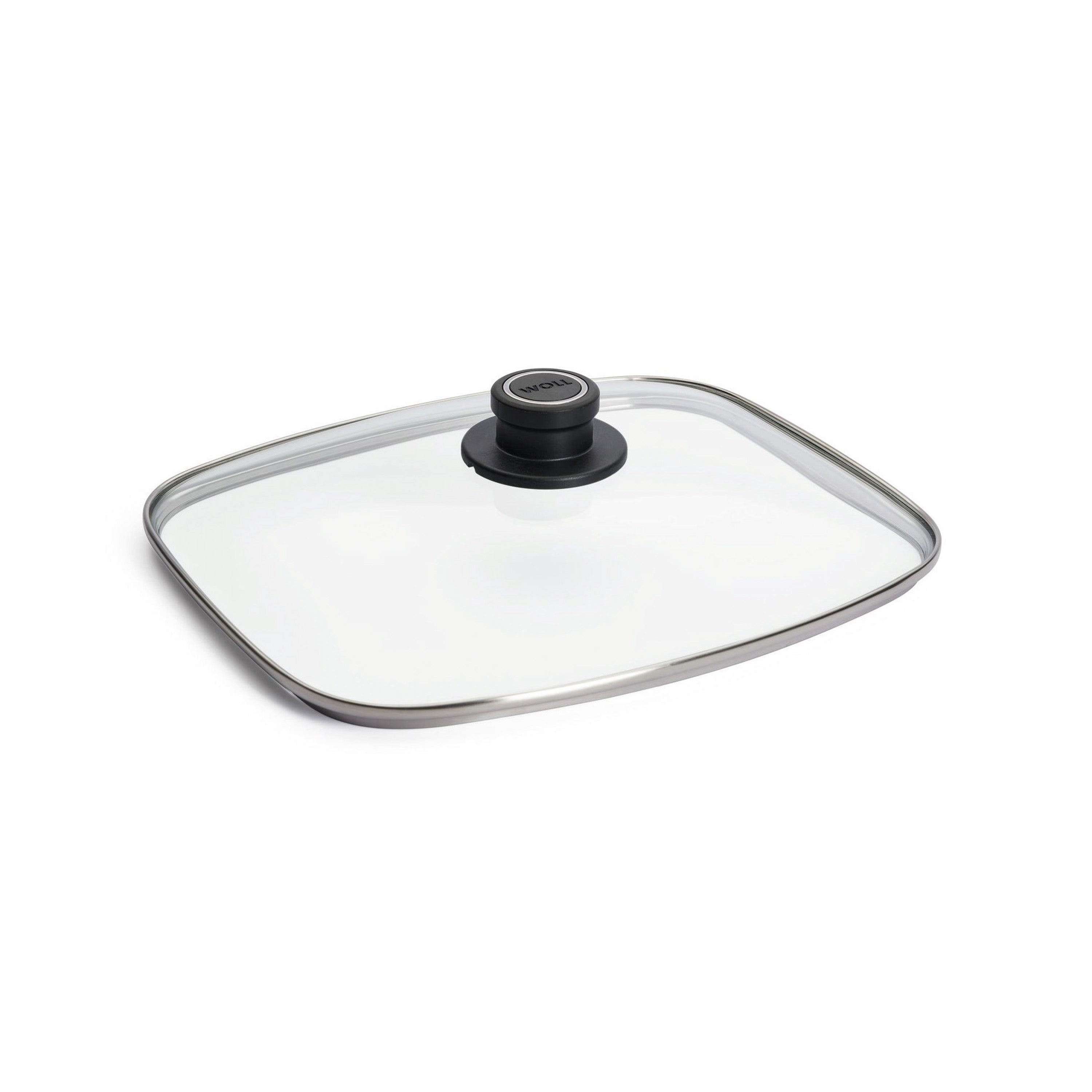 Coperchio in vetro temprato trasparente resistente fino a 250°C. Compatibile con la linea Diamond Lite e Titan Best. • Lavabile in lavastoviglie • Dimensioni: 24 x 24 cm