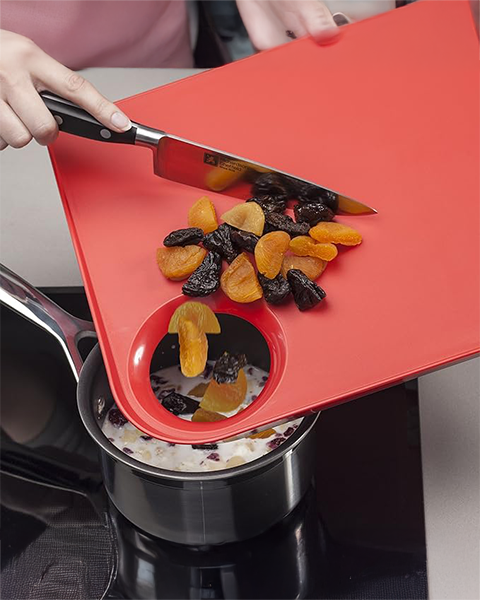 Tagliere in plastica con base antiscivolo e foro con protezioni laterali rialzate per...