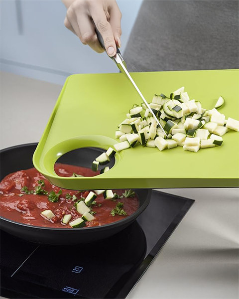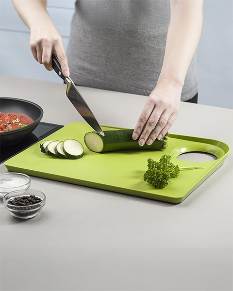 Tagliere in plastica con base antiscivolo e foro con protezioni laterali rialzate per...