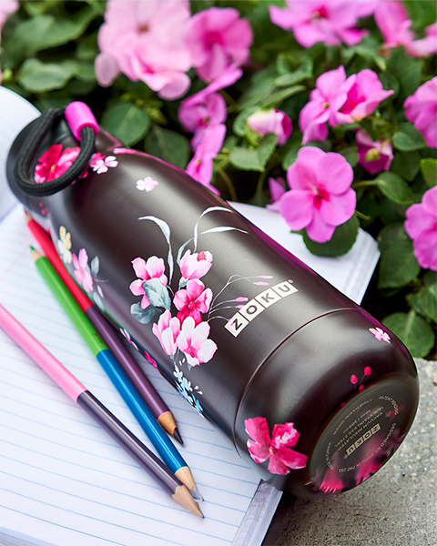 Bottiglia termica tema floreale neraStainless Steel Bottles sono bottiglie con doppia...